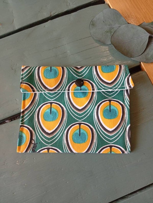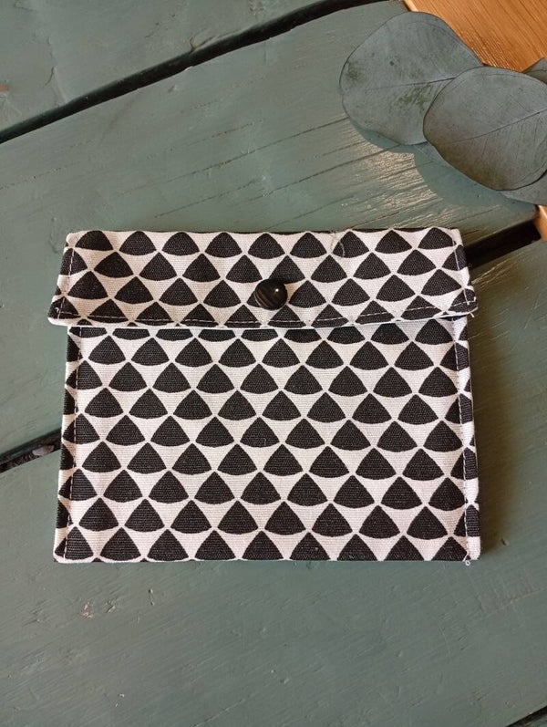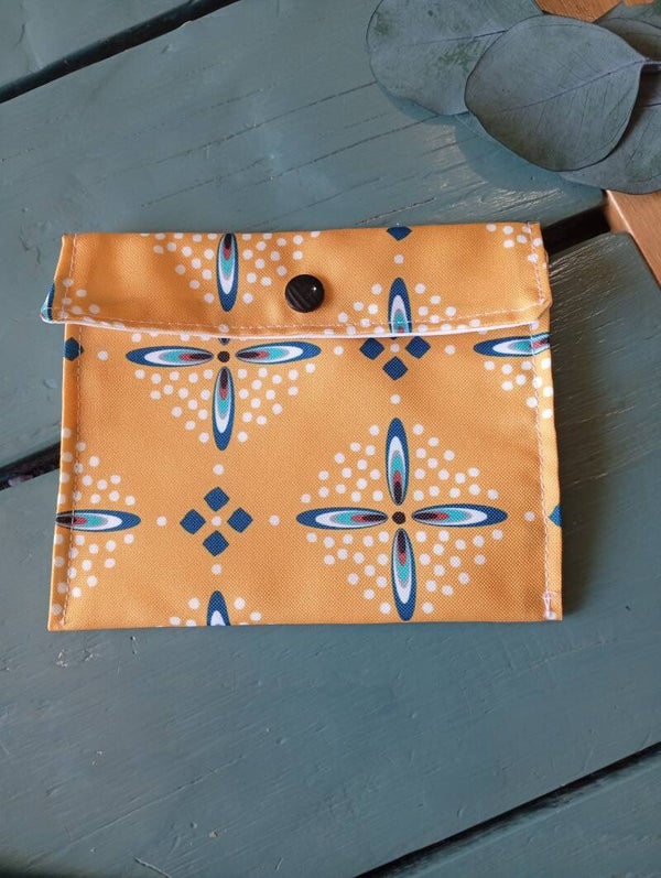 Fabriquée artisanalement, l'extérieur est en coton et l'intérieur et doublé de tissu PUL imperméable et respirant.